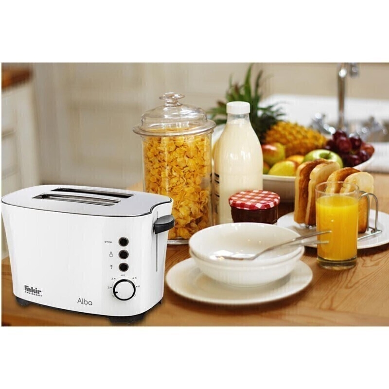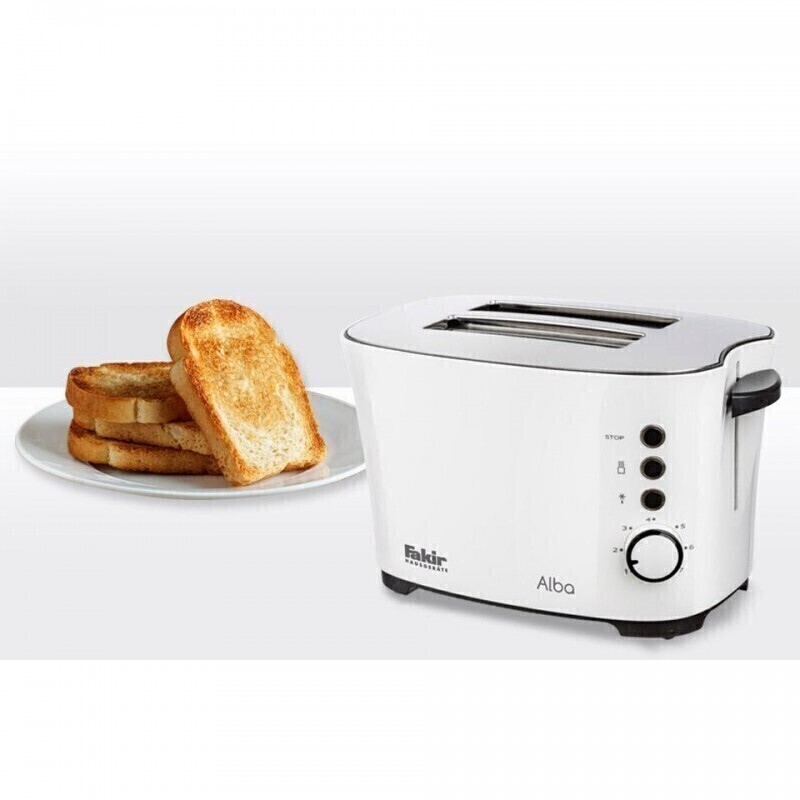 توستر وسیله ای است که برای گرم و برشته کردن نان مورد استفاده قرار میگیرد . هیچ چیز به اندازه صرف صبحانه همراه با نان گرم نمیتواند لذت بخش باشد . یکی از مزیت های قابل توجه استفاده از توستر به جای سایر روش های گرم کردن نان این است که دیگر لازم نیست کسی از میز صبحانه بلند شود بلکه با قرار دادن دستگاه در کنار خود همه میتوانند در عرض چند ثانیه نان را گرم و برشته نمایند . همچنین این دستگاه به دلیل جذابیت خاصی که برای کودکان دارد روشی عالی برای ترغیب آن ها به خوردن این وعده غذایی بسیار مهم میباشد . توستر Alba که توسط کمپانی آلمانی فکر طراحی و تولید شده است دارای ظاهری بسیار جذاب و مدرن میباشد .