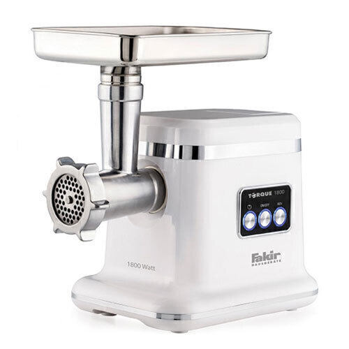 Torque 1800 از محصولات کاربردی امرزه آشپزخانه های ماست و ساخت شرکت Fakir می باشد، که از قابلیت های بروز برخوردار می باشد. این چرخ گوشت از توان بالای 1800 وات با بدنه پلاستیکی مقاوم ساخته شده است، که به آسانی گوشت را چرخ کرده و می تواند یک دستیار فوق العاده برای شما در آشپزی باشد. طراحی چرخ گوشت نامبرده فکر با بدنه ای سفید رنگ، سینی استیل نقره ای و لوله ناودانی استیل همراه می باشد که مجهز به پایه های ضد لغزش می باشد. بر روی بدنه دکمه های روشن و خاموش و حرکت معکوس نیز تعبیه شده است.
