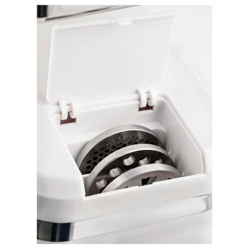 از ویژگی های دیگر چرخ گوشت Torque 1800 می توان به 4 عدد تیغه استیل و قابلیت تهیه و درست کردن سوسیس و کبه های خوشمزه اشاره کرد. سیستم چرخش معکوس ( Reverse ) برای مواقعی استفاده می شود که گوشت داخل دنده ها و تیغه های دستگاه گیر کرده باشد و برای جلوگیری از خراب شدن چرخ گوشت با این دکمه می توانید حرکت تیغه ها را برعکس بچرخانید و به عقب برگردانید.