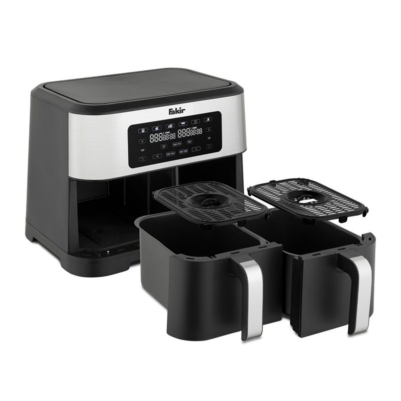 ظرفیت کاسههای سرخ کن دوقلو نینجا ۳.۸ لیتر است که در مجموع ظرفیتی معادل ۷.۶ لیتر را در اختیار شما قرار میدهد. با استفاده از این حجم چشمگیر میتوانید برای یک خانواده چندنفره غذا درست کنید. شکل کاسه سرخ کن مستطیلی بوده و جنس آن را روکش با لایه نچسب تشکیل میدهد. نوع قرار گرفتن سبدهای این محصول کشویی است که بهآسانی قابل تفکیک و قراردهی خواهد بود. این دو سبد نیز قابلیت شستشو در داخل ماشین ظرفشویی را دارند.